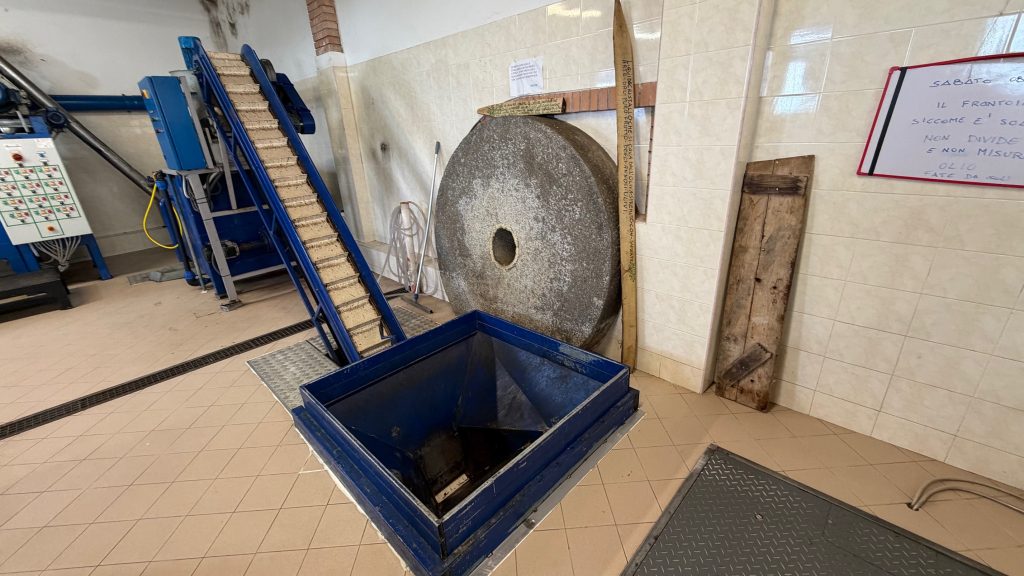 Il metodo tradizionale, che va via via scomparendo, si basa sull’utilizzo di molazze a macine di granito che, con il loro peso, schiacciano le olive; il metodo moderno ricorre invece a frangitori a martelli o a dischi rotanti, con il vantaggio di frantumare velocemente una grande quantità di olive, ottenendo una pasta più uniforme e limitando al minimo il dannoso processo di ossidazione della pasta che avviene quando la stessa entra in contatto con l’ossigeno.